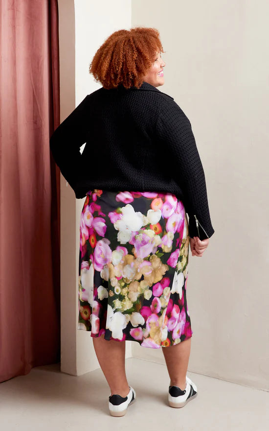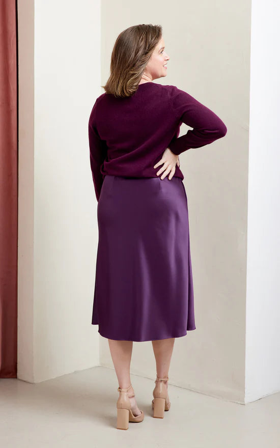 Embrace effortless elegance with the Astell Skirt! This bias-cut beauty hits just below the knee with a graceful flow that moves with you, while the internal elastic waistband ensures all-day comfort without compromising on style. Back darts add shaping, and an optional side zipper to make getting dressed a breeze, no matter your shape.