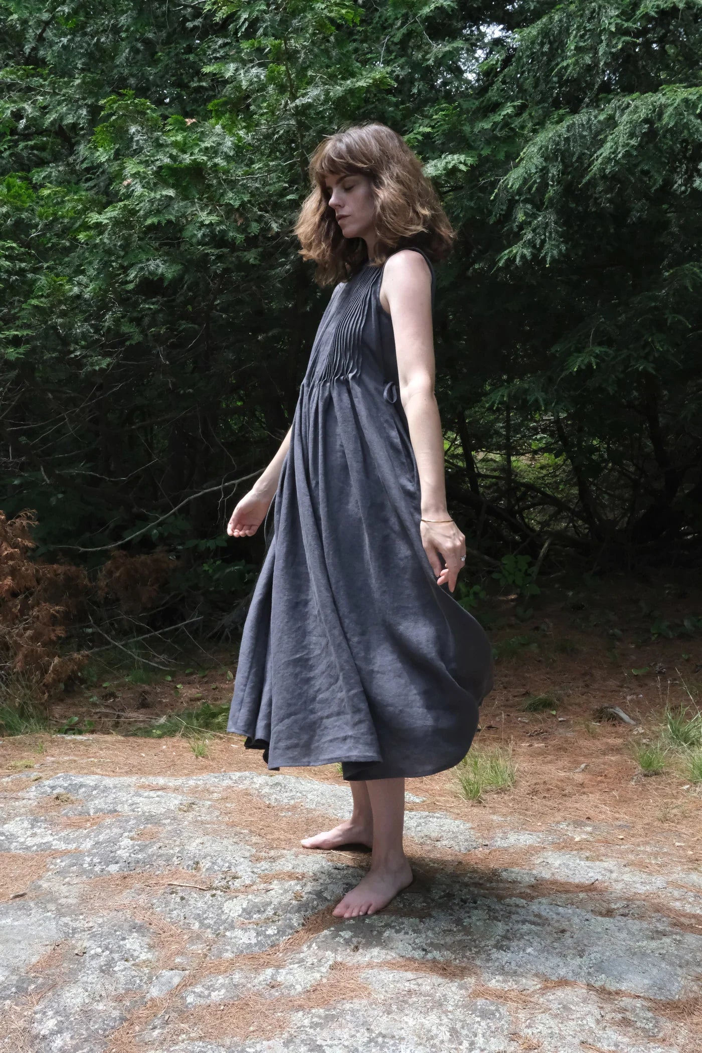 The Women's Garden Dress is a relaxed fitting dress with side ties just above the waistline which can be adjusted to suit a desired silhouette.