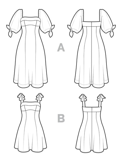 Lilas is a romantic, feminine dress that shifts effortlessly from casual to elegant depending on your choice of fabric.