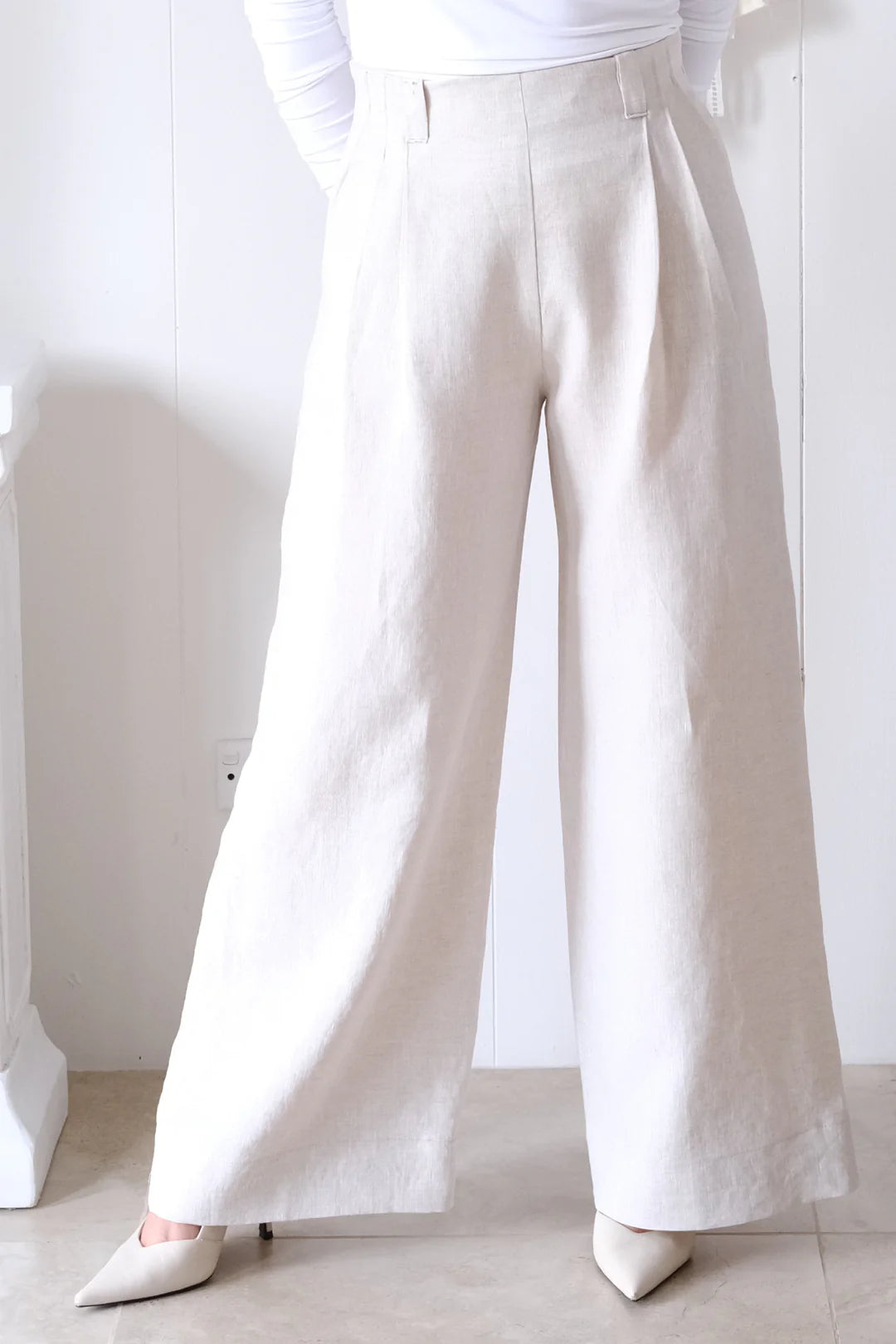 This style is designed with a relaxed/elegant feel. Made to be a staple in your wardrobe and a piece that elevates each outfit. This pattern is cut in a high waist style, flowing into wide-leg pants, fastened by a centre back invisible zipper. Tailored styling includes belt loops, pleats & pockets. Legs are cut wide to create a flattering silhouette.