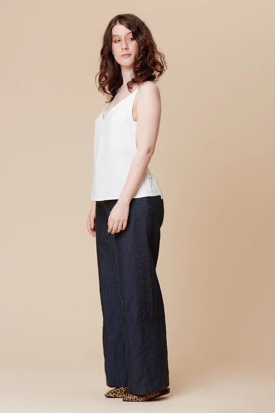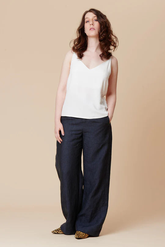 Pensée is a lingerie-inspired slip dress and camisole. With a V neckline, delicate straps, darted and partially lined bodice, and wrap back, it's beautiful on its own or layered over close-fitting tops and tees.