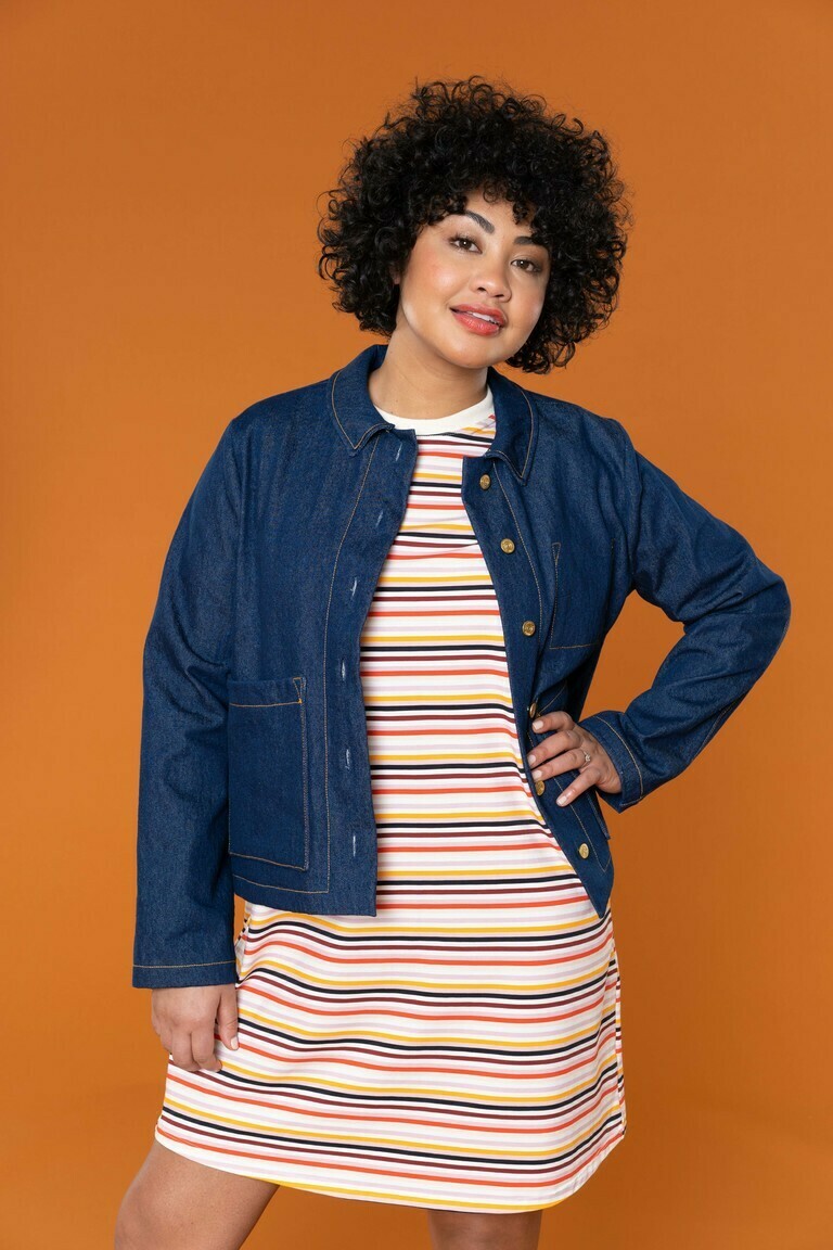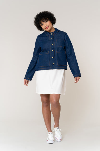 The Rhett jacket is a stylish, workwear-inspired chore coat that you can make in an afternoon. Customize your jacket with three pocket options to mix and match, an inside chest pocket, an oversized rectangular pocket, and shaped patch pockets.
