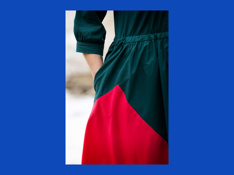 The DYNAMO design is an ode to the traditional dress with a gathered skirt. The simple version (Version A) made with one single fabric is a great base for colourful prints, while the version (Version B) with two contrasting fabrics is a fun puzzle to put together in a slightly new way.